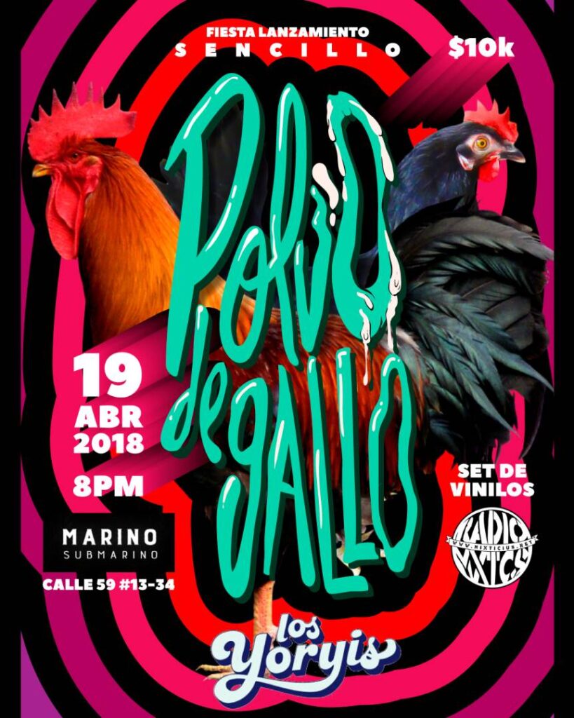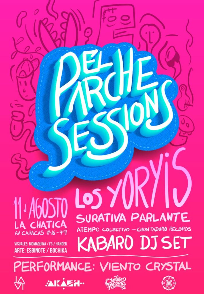Este es el pequeño recorrido que hemos tenido con una de las bandas revelación de Bogotá en los últimos años, hemos estado juntos en sencillos como Panchita, Polvo de Gallo y Nu-Raspa y también desde el mismísimo primer Parche Sessions por allá en el 2017 en el centro de Bogotá: este fue el poster:
